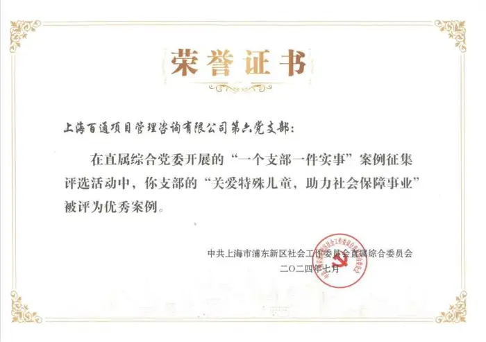 “七一”前夕,6月26日下午,上海百通項目管理咨詢有限公司黨委書記、副總經理顧超同志、黨群工作部、獲獎黨支部代表、獲獎黨員代表、“黨課開講啦”情景劇《一通百通》全體演職人員參加了浦東新區社會工作黨委直屬綜合黨委慶祝建黨103周年暨表彰活動。