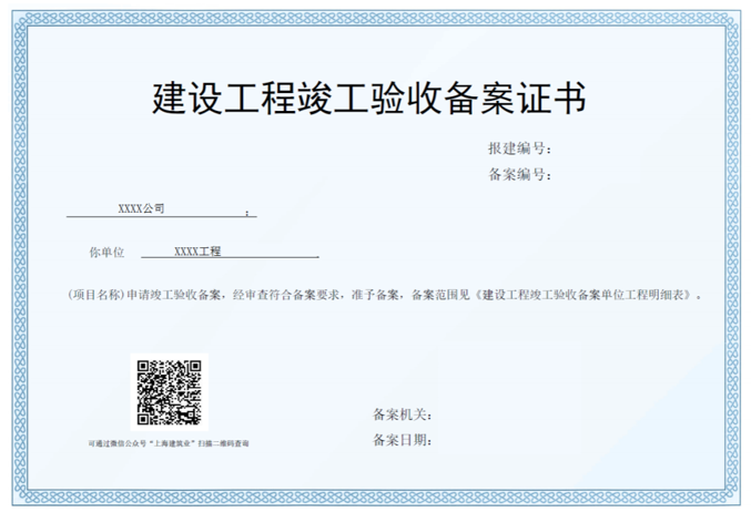 三、建設(shè)工程竣工驗(yàn)收備案電子證書可通過(guò)關(guān)注“上海建筑業(yè)”微信服務(wù)號(hào),掃描電子證書附帶的二維碼查詢和驗(yàn)證。